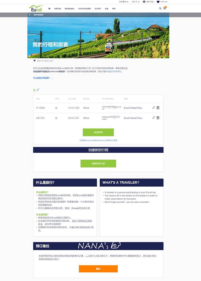 ②在a中添加旅客,我和朋友同行,可以加在一个行程当中,需要输入欧铁通票信息