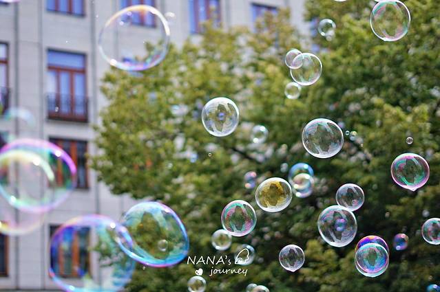 街头的大型吹泡泡,大人、孩子都乐在其中,看着泡泡在空中飞过,思绪也跟着一起飘走,似乎这么清闲的时光不多见了