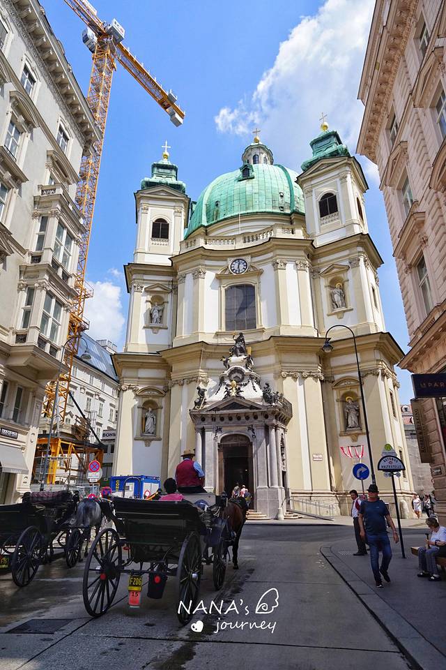 离斯蒂芬大教堂不远处,是圣伯多禄教堂,这个教堂也被很多人称为“夹缝中的教堂”,是一座古老的罗马主教教堂,典型的巴洛克风格。