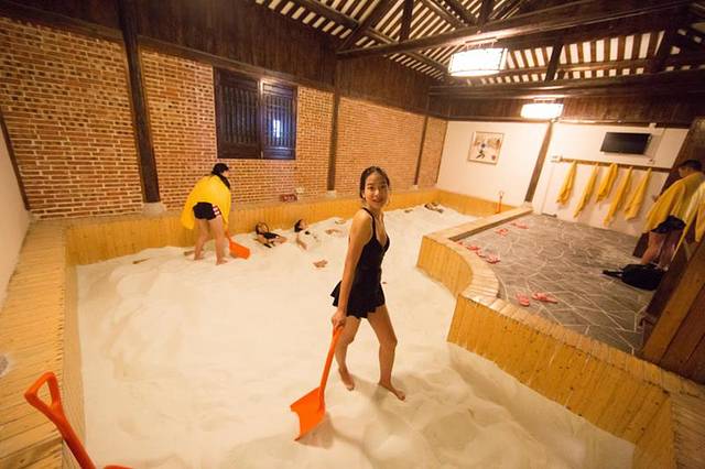 因为温泉一次不能泡太久,半个小时就够了。我们泡完,散散步就回酒店休息了。到了晚上,又出来体验了景区的池区项目,既然好不容易来一趟,那就要把每个好玩项目体验个遍。盐浴、太空舱、鱼疗……