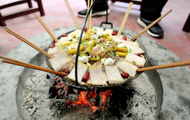 新鲜的板栗配上罗田的美食扛把子——吊锅,那滋味简直太美妙。土锅土灶土原料、土柴土菜土做法,用料地道,手法传统,原汁原味,自然出奇地厚重、纯正、天然。