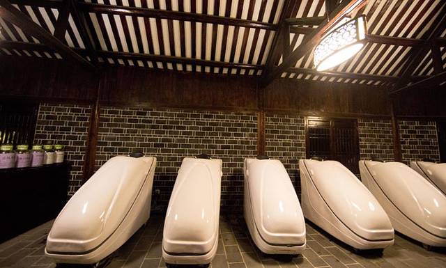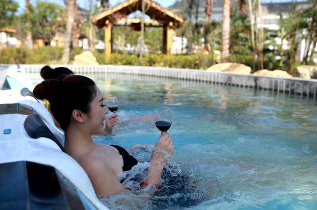浪漫的花瓣池、红酒池;有趣的海洋球池、小黄鸭池;养生中药池……风格多得我当场就犯了选择困难症。最后选择了气泡按摩躺椅浴,舒服得快要睡着了。