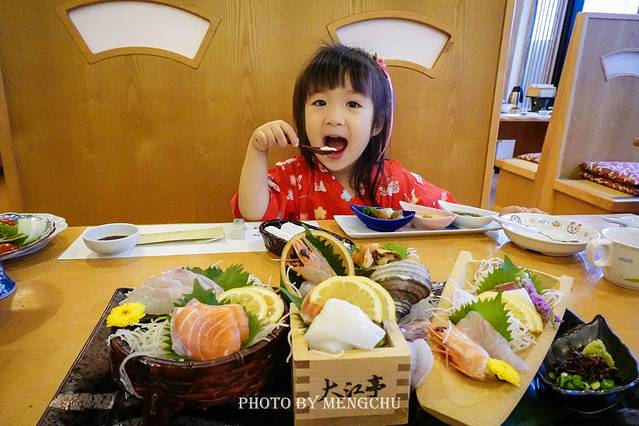 这一天,对小丫头来说,有着太多的第一次:第一次泡着足汤吃冰淇淋,第一次看着大海泡温泉,第一次享用了如此精致的料理,以及第一次睡榻榻米,开心得在床铺上一直打滚。来到日本的第一天,她已经爱上了这里。