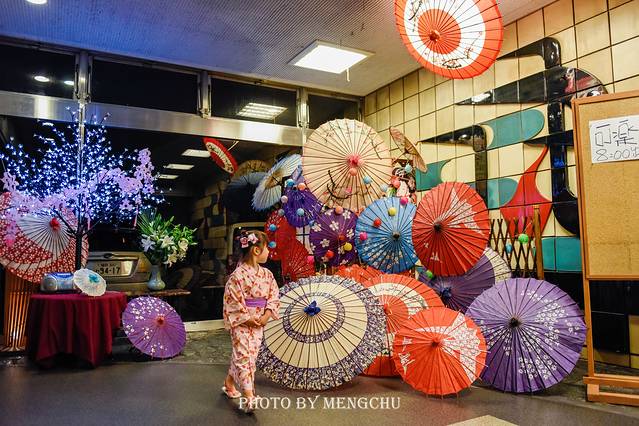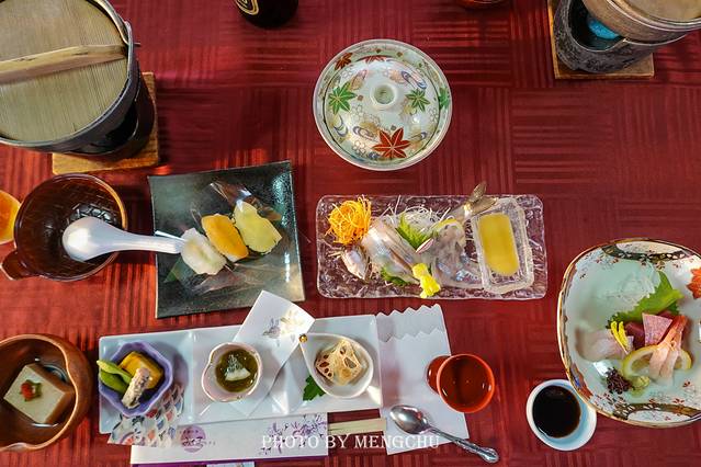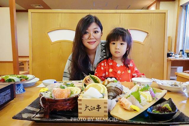 晚餐的会席料理,谈不上有多奢华,味道也是中规中矩,但重要的在于氛围。几乎每次住温泉酒店,我都会选择半食宿的形式,即一泊二食(早餐和晚餐),正正经经的用一餐丰盛的会席料理,享受殷切的跪式服务,是入住温泉旅馆的一种仪式感。第一次见到碗碗碟碟摆了一桌子的小丫头,新奇得很,每一道菜都忍不住想去尝试一下。