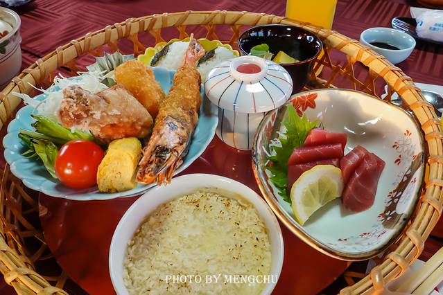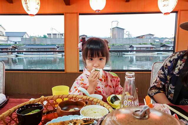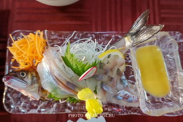 屋形船上的会席料理一如既往地保持着日本的精致水准,最大的特色是当地的香鱼刺身,小小的一条被片成晶莹透明的薄片,大概是因为江鱼略腥,所以搭配的不是通常的酱油山葵泥,而是蜂蜜芥末酱,入口倒并不觉得腥,口感非常细腻滑嫩。