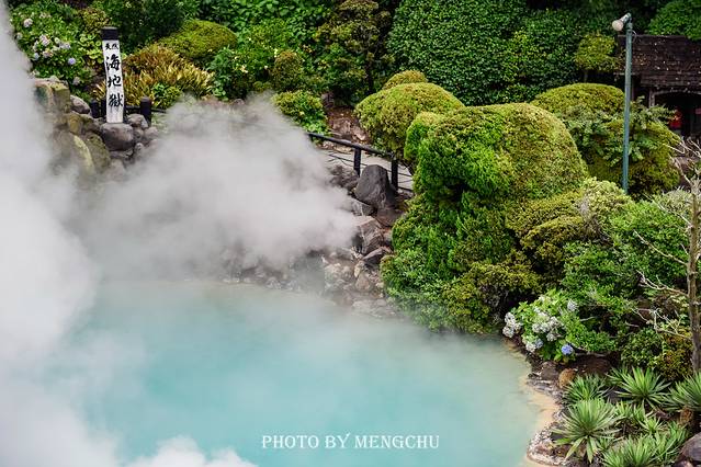 自奈良时代起便极负胜名的别府,不止温泉涌出量占世界第二,更以种类繁多的温泉而扬名国际。曾经我去美国黄石国家公园时,就感叹美国人的“浪费”,居然连一处卖温泉蛋的地方都没有,若是在日本,如此丰富的地热资源,怕是早被发展成温泉乡了;没想到,时隔一年之后,我来到了别府,才惊觉,原来这就是浓缩版的黄石国家公园啊!别府不止有着各种各样的热泉、彩泉、间歇泉,还有极乐馒头、地狱蒸布丁、地狱蒸煮厨房等各种温泉美食,果然还是“亚洲版”的温泉更合我的胃口啊~