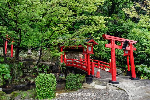在俯视钴蓝色地狱的山上,伫立着红色的鸟居,这里就是“白龙稻荷大神”神社,据说这座神社可以保佑家庭安全、生意兴隆和交通安全。