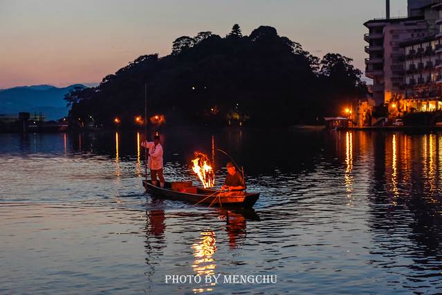 每年5月20日至10月下旬,都能在屋形船上欣赏到有着400年历史的“鵜飼”的绝技。所谓“鵜飼”,指得并非是鹈鹕,而是有着细长脖子的鸬鹚,千百年来,渔民们驯养它们、利用它们来捕香鱼。然而随着渔业的现代化,“鵜飼”这种低效率的传统捕鱼方法已渐渐没落,只能作为无形民俗文化财产得以保护了。