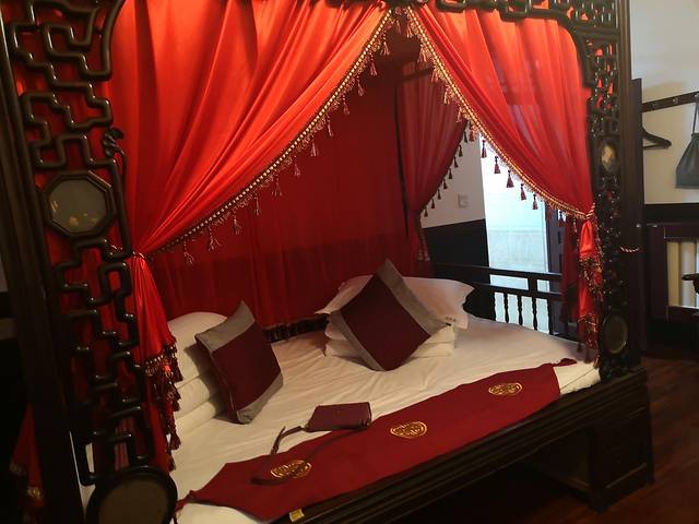 第一晚我们住了这种说是叫“龙凤”架子床的房型,第二晚我们去住了炕房,当然不是因为住的不舒服,实在是想体验一下炕房是什么感觉,哈哈,还要感谢店家帮我们换房型呢,一点都没有不耐烦的样子,也是赶得巧,当晚客栈的最后一间大炕房成功的被我们定下啦,哈哈哈。