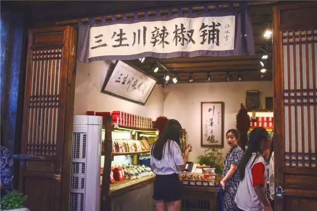 百年木板门,千载石板路,虽然是条老街,街上的商业气息非常浓厚,各种店铺应有尽有,作为吃辣出名的四川,锦里就有个专门卖辣椒铺的小店子。木制的小门,就用一块布写着店名挂在横梁上。非常有古典的感觉。但是我平时吃辣不多,就没进去买。