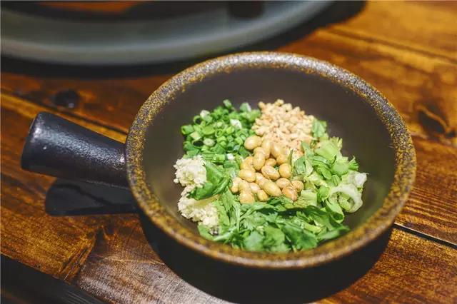如果觉想体验不同的味道,就配上店家给的特制蘸料,标配的是青菜葱末做底,配上花生末,蒜末等等。烫熟的鱼蘸下这个更好吃。如果喜欢辣的话,就适当的加下汤底,我因为平时吃辣吃的不多,就没怎么加汤,但是清单的也超级好吃哦。