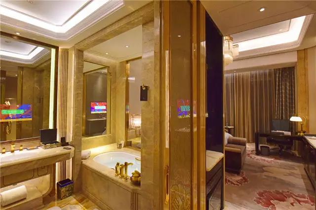 酒店宽敞大气,装修时尚精致,很有艺术感,浓烈的欧式风情结合四川本土的蜀文化元素,让酒店极富艺术气息。特别是41层的酒店空中大堂,有一副让人震撼的壁画《天府盛景图》,由400吨玉石雕刻完成,展示了青城山、望江楼以及都江堰的绝美风光,非常震撼!酒店的设计非常完美,曾荣获《第36届金钥匙奖全球酒店设计奖》最佳奢华酒店及最佳奢华酒店客房等荣誉。