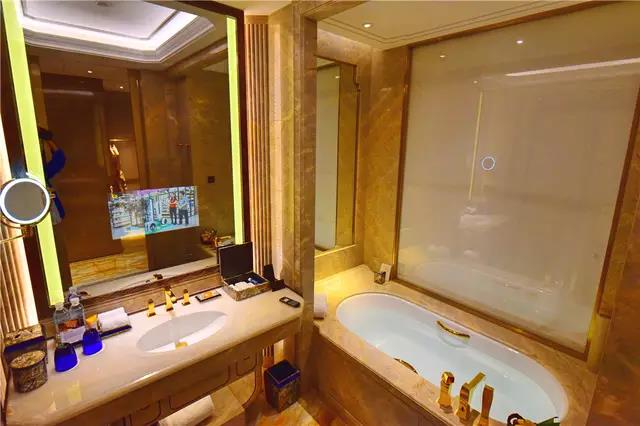 另外厕所和洗浴是分开的,洗浴可以站着淋浴或者在浴缸里泡澡,晚上累了在浴缸边泡澡边吃水果边看智能电视,十分惬意,也很有情调!房间还覆盖PM2.5空气净化自动监测系统,不出门也可以呼吸新鲜空气。