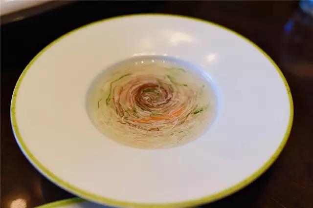 餐厅里装修的非常文雅,和菜系的精致汇成一派,材料都是平时比较常见的,一般市场也能买到,但是就是将菜的口感做出来了。比如简单的虾,摆的整齐,简单的配上少许的香叶,红红的虾青色的香叶。非常的好看,我用筷子夹了一口,很好的保留了虾的鲜味。如果说火锅里的虾是大快朵颐,这次吃的虾就是需要慢慢品味的,把每一只虾肉都能嚼出厨师的对菜肴创造的无比用心。