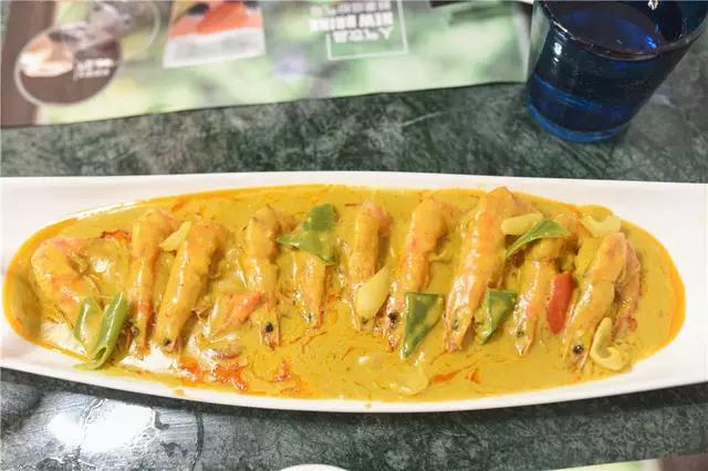咖喱虾:红红的虾子配上黄黄的咖喱,夹起一个去除虾壳再用虾蘸下咖喱,那滋味爽翻了天,而且虾子吃完,还可以尝试用其他的美食蘸咖喱酱来吃,那也是不错的感觉哦!