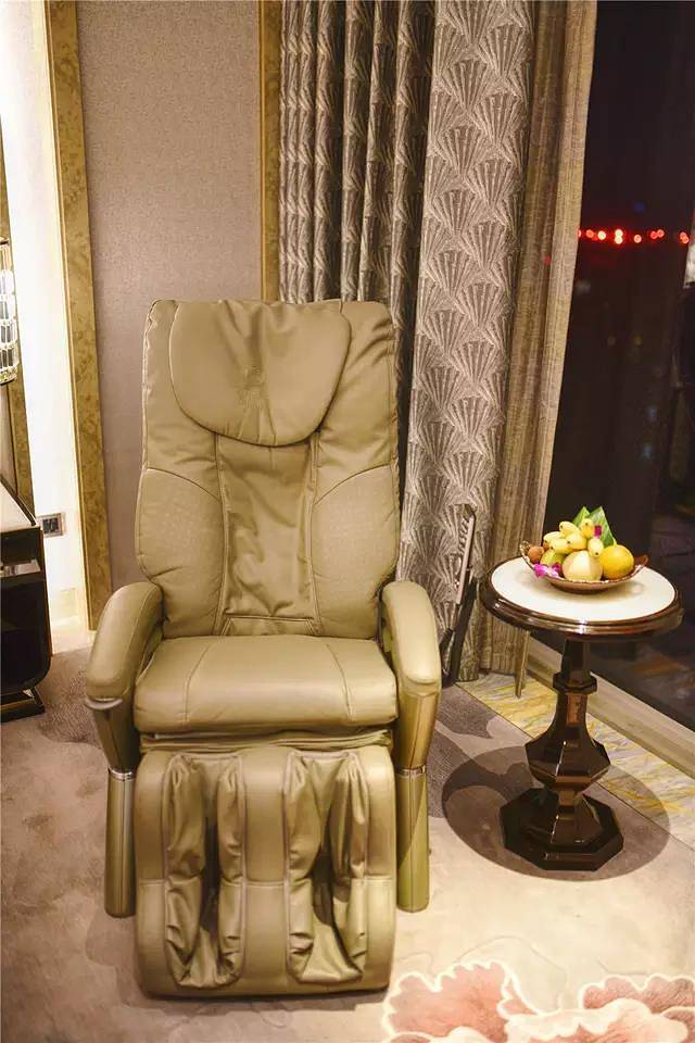 房间里非常安静,房间整体是暖色调,家具十分齐全,床特别舒适,很少看到酒店房间里配有按摩椅,而电动按摩椅这这里的标配。我非常喜欢,自动按摩,如果身心疲倦了,就享受一会儿,很有用!