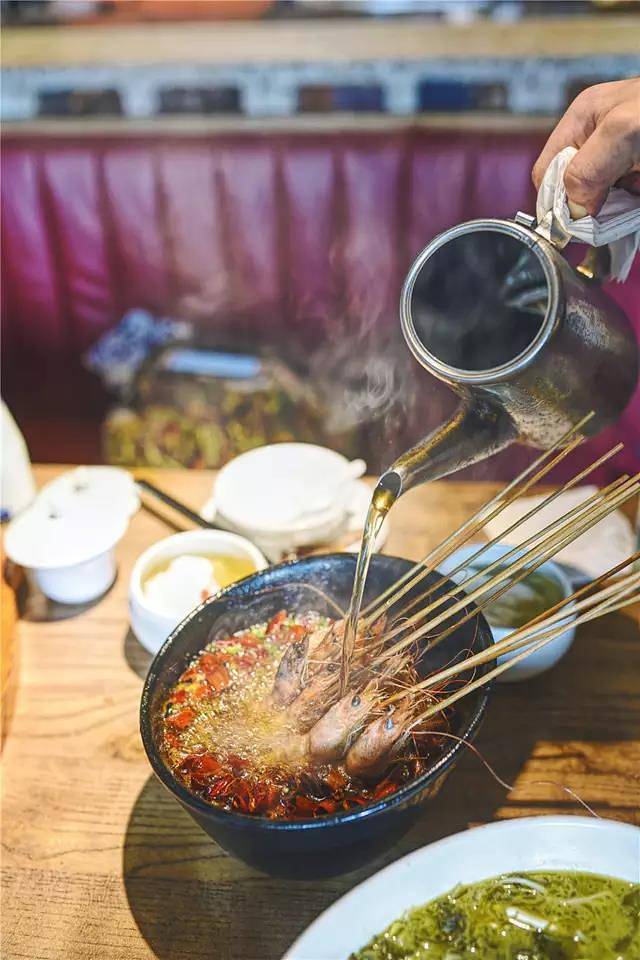 裸奔坨坨虾看菜名就有意思吧,将新鲜的虾用竹签穿好好,一把拿着,钵里放着干辣椒,烧好的热油现场淋上去,“滋啦”一声香味变传入鼻腔,拿起一根竹签虾壳已经快去掉了,闻下味道让人垂涎三尺,一口下去虾肉的鲜配上辣椒的辣不要太美,我一个人就吃了好多个。