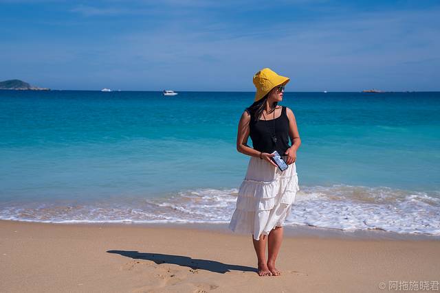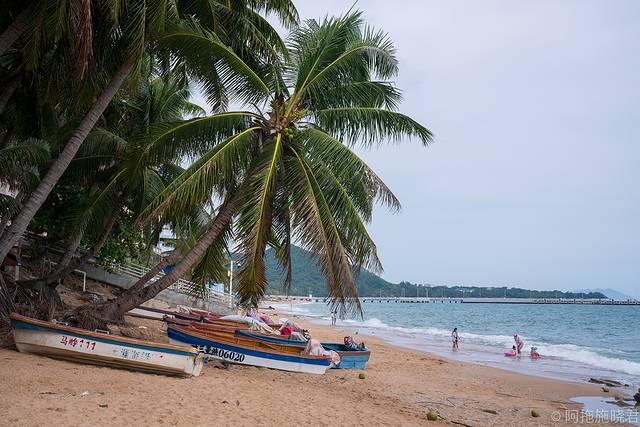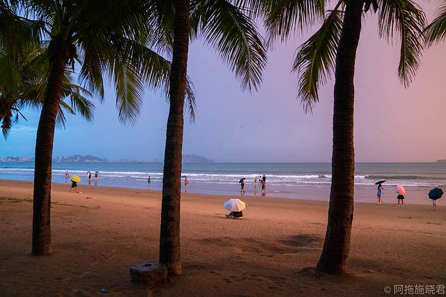 相较于三亚湾,大东海人会少一些,沙子比较细腻,玩起来可能会更舒服一点。而且白沙滩,早早来到这里拍出来的照片还是很舒服的。