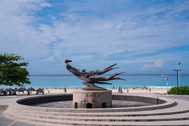 这个雕塑该是大东海最熟悉的标志了,小圣托里尼其实和大东海是在一个海湾的,只是一边是军事基地去不成了。大东海在三亚的榆林港和鹿回头之间,是个4A级景区。
