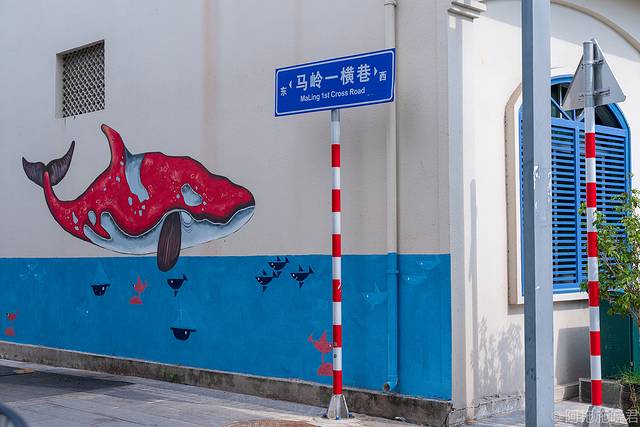 这是一条很有异国风情的街道,墙面上是不同样貌的海上墙绘,在每一条巷子里都会写上东西两个方向。