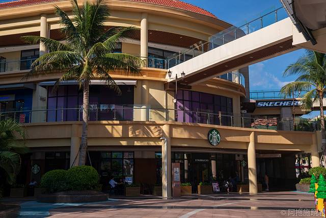亚龙湾附近还是有几个商场的,这天在亚龙湾的海边呆腻了以后我来到了亚龙湾壹号小镇奥特莱斯,奥特莱斯一直都是品牌折扣购物的点,不过我来到这更重要的是找点吃的。
