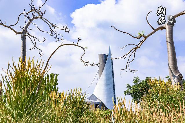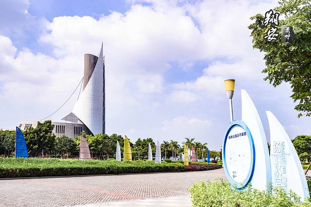因翔安隧道而建的通风塔,隧道两端一个是岛内五通灯塔公园的五通塔,一个翔安扬帆公园的通风塔,隔海对望。五通灯塔公园知名度较高,而同为通风作用的扬帆公园却鲜为人知。其实扬帆公园也挺美的,通风塔像扬起的船帆,立在海边。