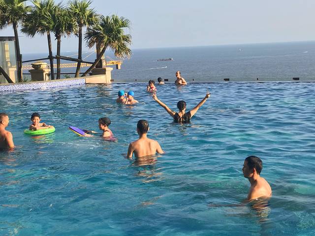 本来吃完中午饭想打道回府,但店家介绍我们去无边际泳池玩,怎么忘了这个美地?果然名不虚传,以为来泡个淡水澡,一尝还是咸的