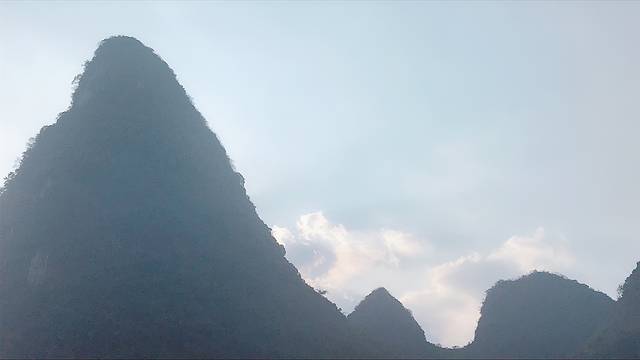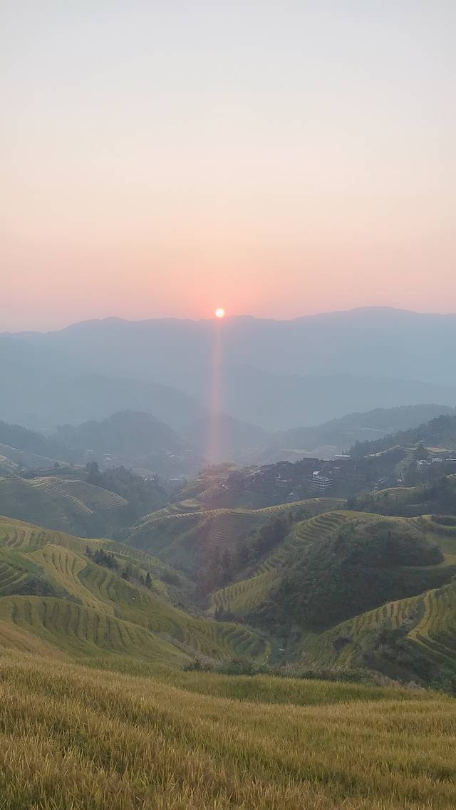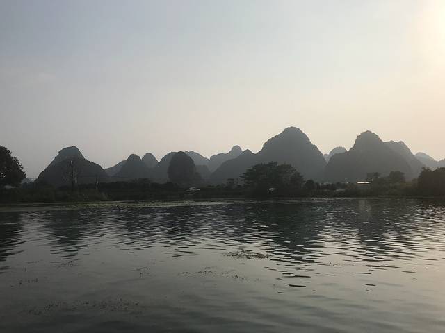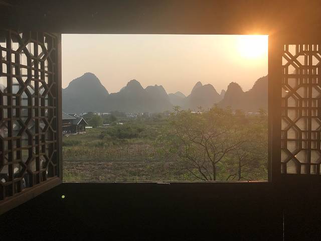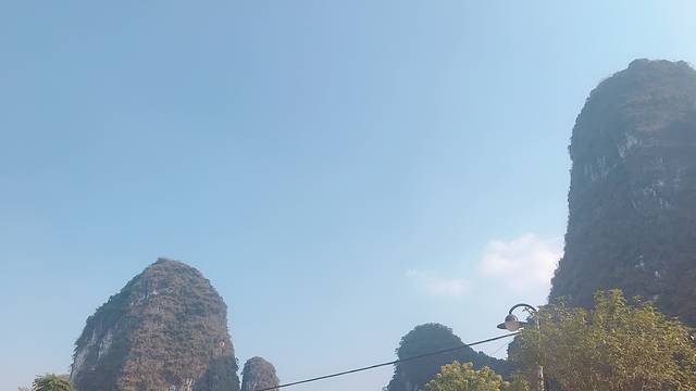 早上五点就起来了!简单洗漱后步行25分钟去了一号西山韶乐,等了一个小时,大概六点四十,太阳终于出来了!真的很漂亮!不辜负我等了这么久!从一号下来回到住的地方收拾收拾,吃了早餐,我们步行下山的,到大寨停车场要四五十分钟,我们九点的车出发去阳朔!
