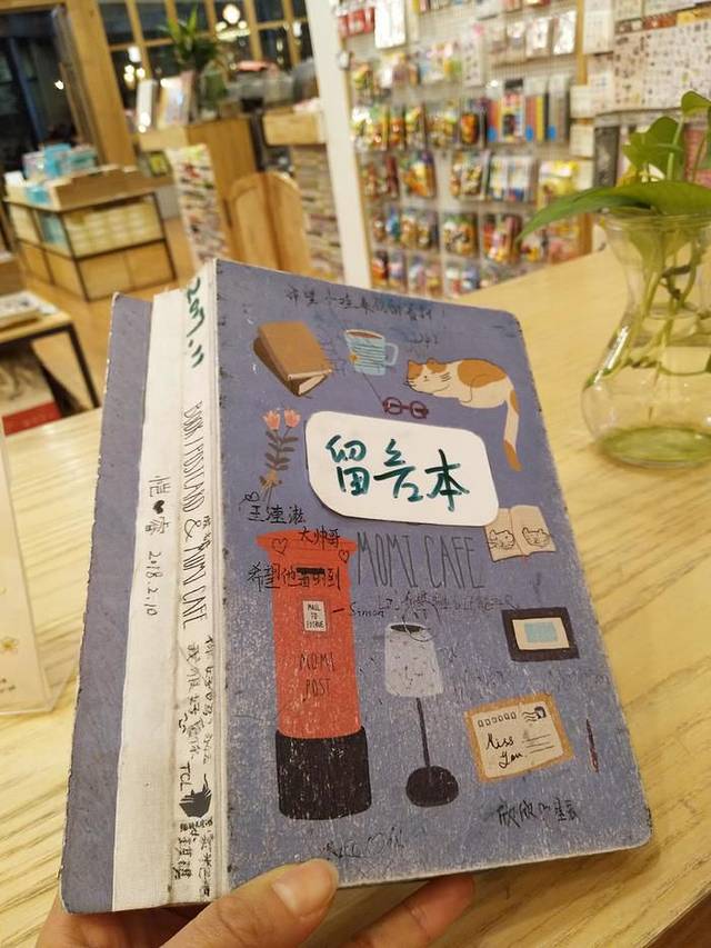 看到书桌上有一本厚厚的笔记本,拿过来看看,是一本留言本,不同的人留下了不同的文字。最后我也挑了个空白的地方写下了一段话,类似到此一游,哈哈。正当我非常专注的写留言时,一个人坐在我的对面,我没有抬头去看,仍旧在写,当我写完看向她时,看见她正巧也埋头在写着明信片,或许是想要给自己写下一段话,或许是想要给谁写下一段美好的话语,这些我都不知道,只是觉得那个场景很美好,干着自己喜欢的事真的很美好。