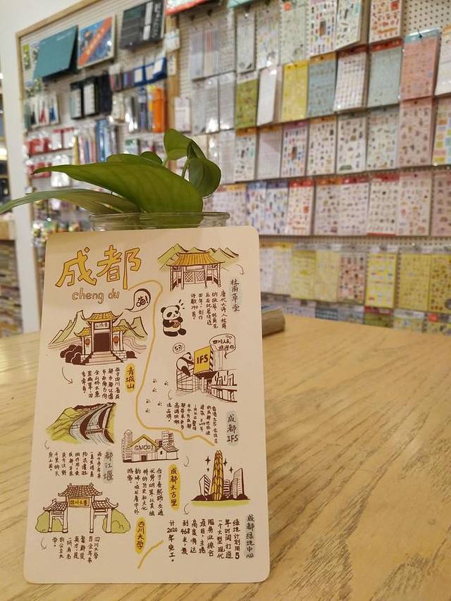 在这家温馨的小店里转了一圈之后,决定给自己选一张明信片。这个还有点难,明信片太多了,眼花缭乱的,有关成都各处风景景点的,萌萌的大熊猫的,等等,等等,太多太多了,选不过来,作为有深度的选择恐惧症人群之一来说,感觉想把每一个好看的都选给自己。这太难了,一点儿也不简单。