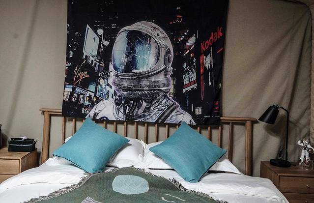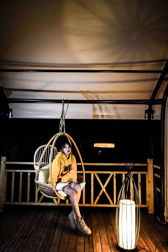 房间里的基础设施比我以往看到的露营帐篷优秀了不止一点,从桌椅到吊灯都有独立设计的感觉,艺术氛围相当浓厚了。