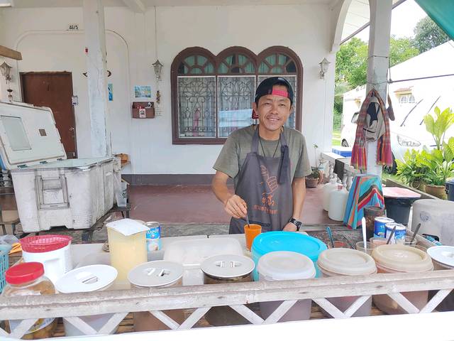 这个水上市场只有周六日开放,我们实在太幸运啦!地址:Rd, Khwaeng Bang Ramat, Khet Taling Chan, Krung Thep Maha Nakhon 10170泰国 从大皇宫打车15-20分钟就到,近,人少,东西还便宜(泰国之旅最划算美食地)!椰子水15猪,芒果50🐷1公斤,有个炒饭才35猪,而且超好吃,椰子沙冰40猪一大个,慕连有200猪一袋大个子或者70猪一袋小个子的,200猪一袋的超甜。