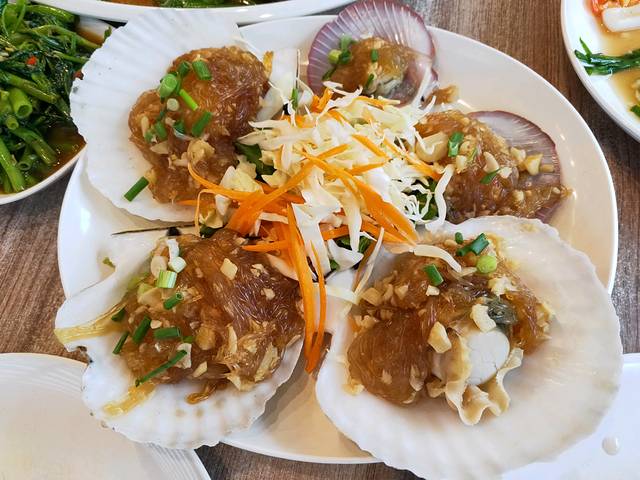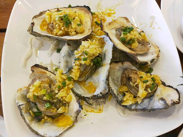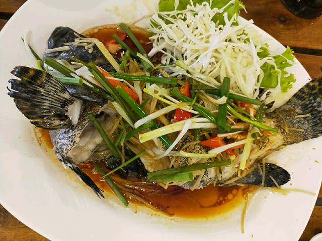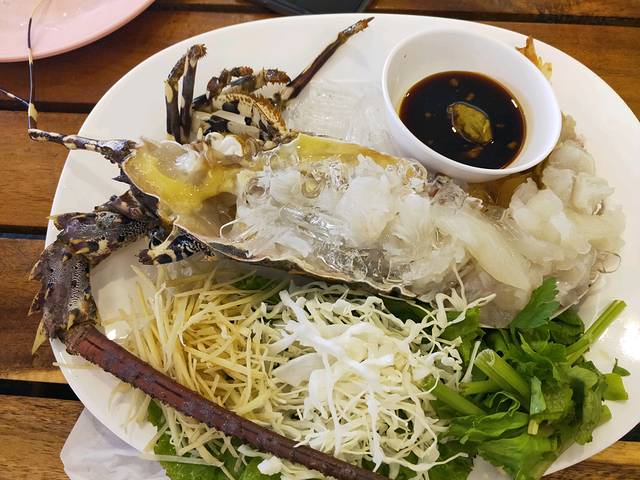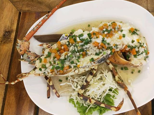 买了2公斤龙虾,1800泰铢一公斤,一虾两食,龙虾刺身非常爽口,蒜蓉蒸味道还可以,跟国内比调味稍微逊色,龙虾肉质很新鲜、结实,就是太贵了(主要因为我们没有讲价,还选了品质最好的龙虾),来这里吃海鲜,记得务必必须一定要讲价!在点餐前讲价!蒸鱼没有特别的印象,生蚝很鲜味,感觉没吃够,菠萝饭也不错,分量有点少。结算930人民币,比较土豪的一顿。