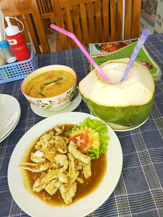 MR. Thong味道还不错,鱿鱼很好吃,椰子冰就是正常的味道,冬阴功汤稍微有点咸。不能在店门口停车,要停挺到沙滩边。人均50元的样子,价格还算合理。