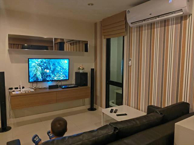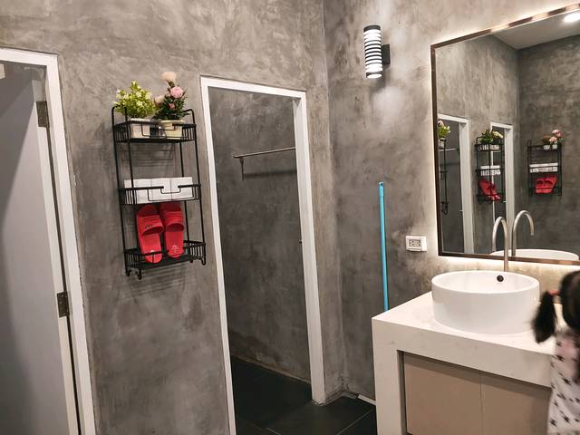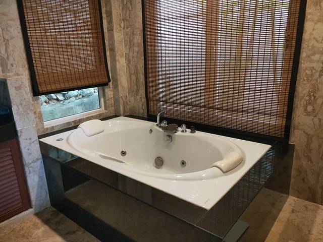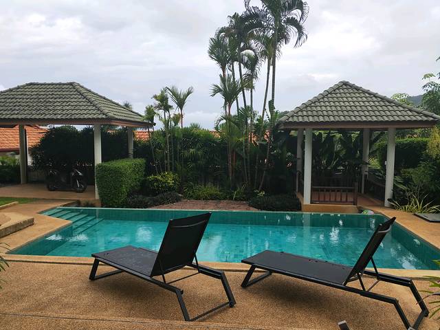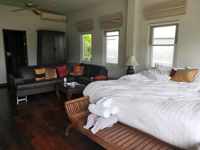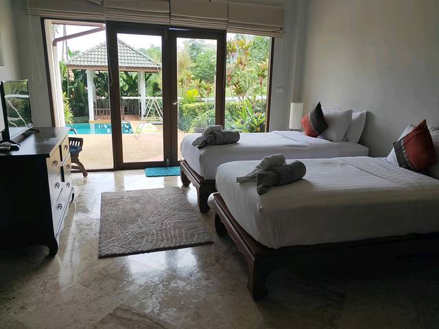 私人游泳池很干净,很棒,4 m✘10 m。你可以在别墅免费提供的水床上享受阳光。 房东很好,让我们中午12点早点提早入住(正常是下午3点)。虽然他们的电费是每台6泰铢,但我们没有问题。我们在那里呆了两天,总共用了58度电。