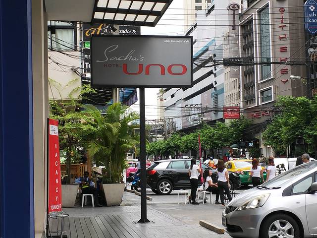 Sacha 's Hotel Uno(404元/晚,不含早):淘宝订接机才86元(携程要150元),机场出来等了10分钟。订的是最便宜的尊贵房,携程上写小孩要收费,但跟酒店确认过,4岁以下小孩不加床不需要收费,订房时直接选2个大人就ok。酒店房间不会太小,感觉是家庭式的,马桶和洗手池4岁的小朋友可以够得着,很方便,房间有落地玻璃,干净卫生。有免费地图提供,需要问前台拿。斜对面有7-11便利店,terminal 21商场和Robinson超市步行3-5分钟就到。 酒店出门左手边走向terminal 21的路上有一个炒饭摊,40泰铢一个饭,天天在那吃早餐。 酒店距离asok和素坤逸地铁站步行5-8分钟(300米左右),当地人说asok站和素坤逸站其实是同一个位置,上楼是asok 楼下是素坤逸,去火车拉差夜市3-4站地铁,很方便。 千万不要打车,因为曼谷超级堵车,我们用了半小时才出到巷口,夜市回来直接搭地铁不用转线。感觉这里也比较安全,terminal21的5楼有foodcourt,4楼有一家知名泰餐。 酒店没有教太多旅游攻略,略显不足但整体非常舒适。 特别是大堂有休息的沙发,checkout之后可以休息。