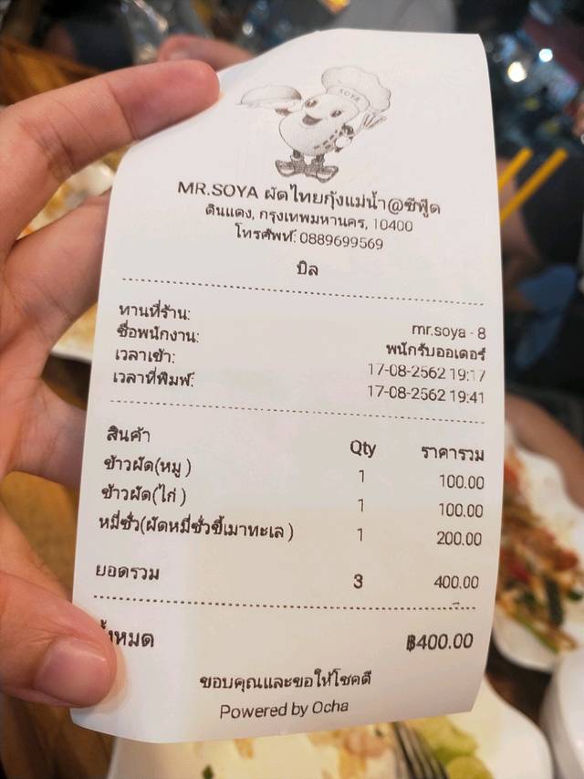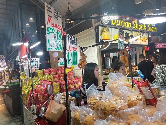 用grab打车99猪,但是用了1个小时才出巷口小路,后来自认倒霉浪费99猪,逃亡下来,转乘地铁3-4站THAILAND COUTRAL CENTER站就到啦。建议先逛一圈再找吃的,我们去到MR.SOYA吃了个好吃的炒粉炒饭饱了,后来看到这个海鲜大餐600猪好后悔呀,还有那个排骨以后真的要试试,虽然据说是辣的。椰子水50猪,我们当时觉得好便宜,后来发现别的地方更便宜呀。在夜市3个人120元人民币内撑撑的。