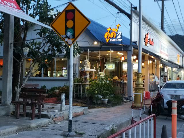 晚餐:去的DOO DEE2店(营业时间12:00-23:00),从携程服务点步行10分钟就到,中途经过知名的3D倒立屋餐厅和兰花按摩。DOO DEE2店就在1店隔壁,只有2店空调。烤鸡翅超级好吃,有点甜,味道好赞,我一个人吃了两只。炒空心菜很嫩,味道调得很好。菠萝海鲜炒饭虽然不是原只菠萝上,但是菠萝味挺浓的,而且海鲜料很多,最喜欢那些腰果,太好吃了。感觉有粤菜风味。