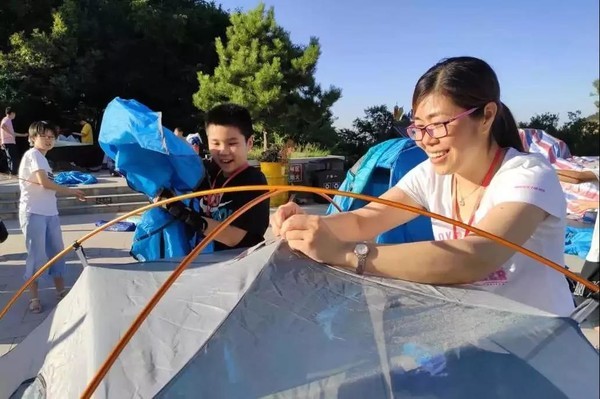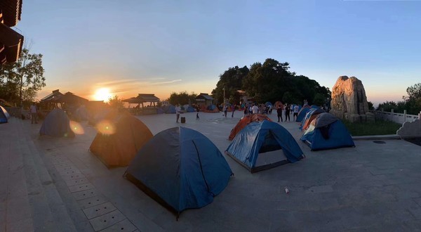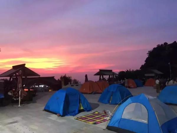 5点左右大家就一块坐索道去山顶,这个时间游客都已经下山了,就第一时间先去玻璃栈道和龙首阁玩了会,就赶紧回到到了藏龙云海广场领了帐篷就开始和孩子一块搭建帐篷,参加篝火晚会,亲子互动游戏,跟孩子一起快乐的玩耍,没有手机没有工作没有压力,才想起多久没有一家人这样子相处了。晚上和孩子躺在帐篷里看着满天的星星,孩子特别激动说从来没见过这么美的星空,下次还要来。这个活动真的很好,让孩子扔掉手机,走出空调房,去接近大自然,以后要多带孩子参加这种活动,这些都是他们成长中和父母在一起忘不了的回忆。