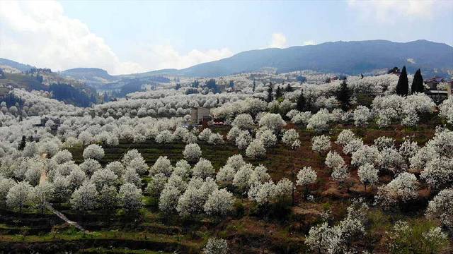 更有休闲乡村,梨花遍树,田园风光杠杠的,