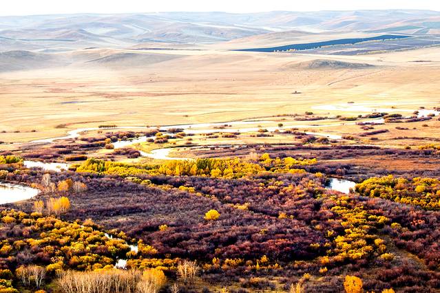 一直都觊觎着内蒙的辽阔之美,想过夏日青青草原,骑马驰骋,也想过秋日的静美私语,两难中最终还是选择深秋的内蒙,因为我更爱秋,萧瑟中却又是丰收的季节,金黄的叶子萧萧而下,铺满着大地,将生机掩藏到土里,待来年展露新生。