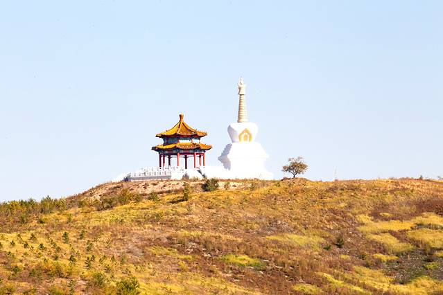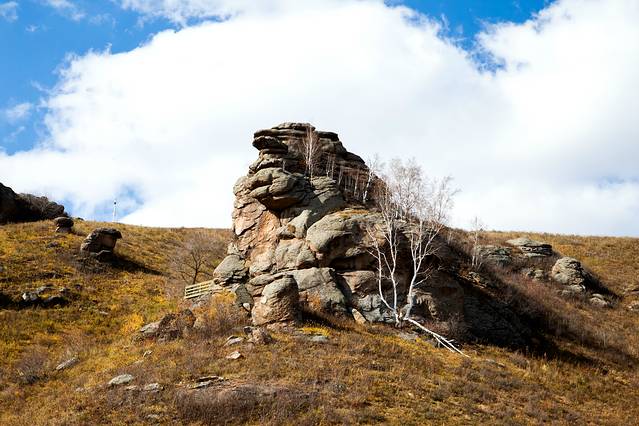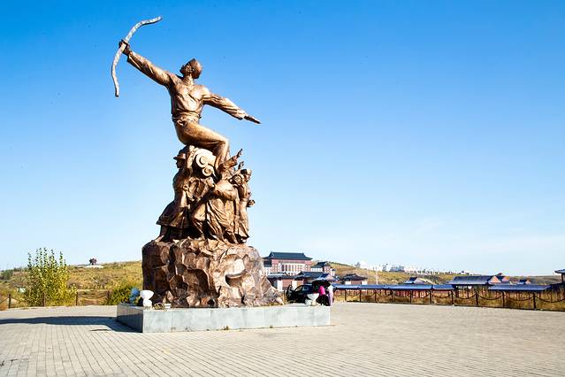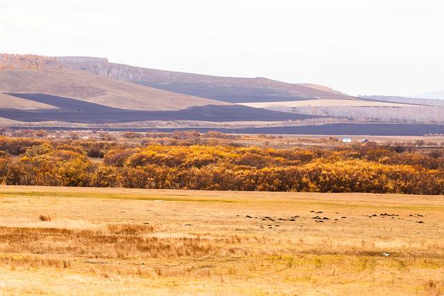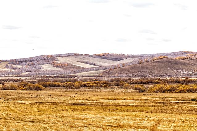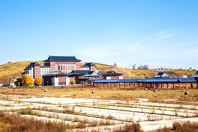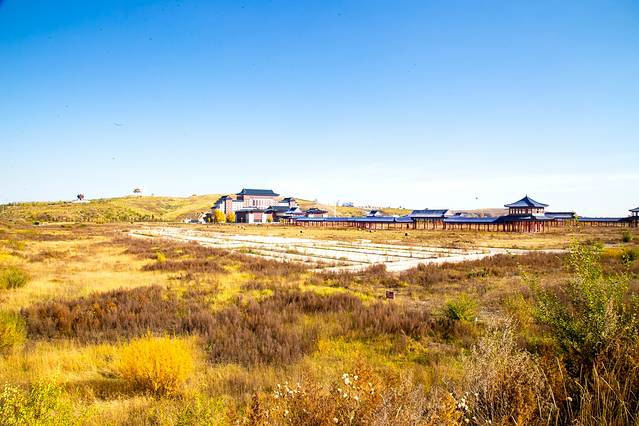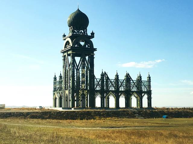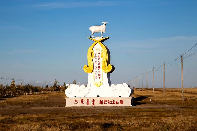 海拉尔6点就已经很亮了,此刻出门还是有点凉,古城区吃饭还算方便,因为在修缮道路也没怎么游逛,内蒙的肉包味道挺不错的,馅多面皮有蓬松,吃完还不忘打包路上享用。在店铺取的车是一辆朗逸,对于三个人来说已经够用,沿途的路况特别好也就没有考虑SUV,在附近的商店添置了路上所需的干粮与水就立刻出发,内蒙自驾之旅正式开始。刚出市区路过一个不知名的建筑,也许是刚进入内蒙如此普通的景色都让我对内蒙的秋着迷。
