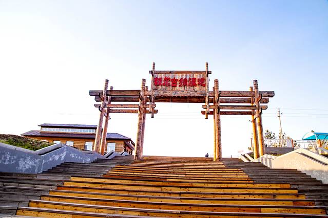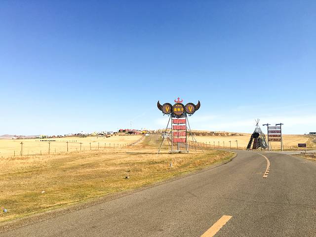从满洲里导航到呼伦湖的道路属于沥青省道,道路宽,车辆少,沿途有许多交叉路通往各个旗,所以限速在80-100之间,路上时有超速监控倒也开的顺畅,一路上的景点并没有什么,下午两点从满洲里出发沿着203行驶大致五六点到达入口。景区并不收费,大门也是很简单,就位于省道一侧,寻找比较简单。