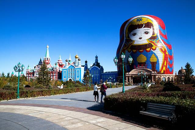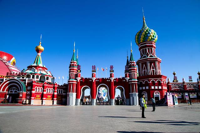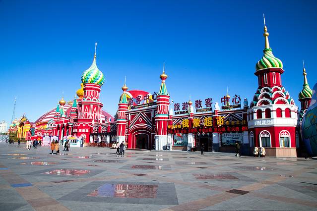 套娃景区是全国唯一以俄罗斯传统工艺品--套娃形象为主题的大型综合旅游度假景区,园区拥有以莫斯科红场为建筑元素的景区入口和游客中心,以圣彼得堡喋血大教堂为外观的俄罗斯民俗体验馆、以伊萨吉普大教堂为建筑形象的中俄友谊展览馆,以及将俄罗斯特色建筑按原比例建设的俄罗斯玉石加工直营店、俄罗斯紫金珠宝直营店、俄罗斯香肠加工直营店、俄罗斯画舫、俄蒙食品超市、套娃体验店、俄罗斯皇家琥珀宫。对于这些来说,个人觉得还是属于套路一级,虽琳琅满目,让人眼前一亮,但事实上很多也并非俄罗斯纯正打造,至于买,仁者见仁智者见智,只要喜欢就好。