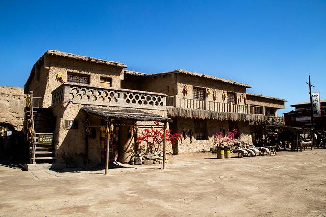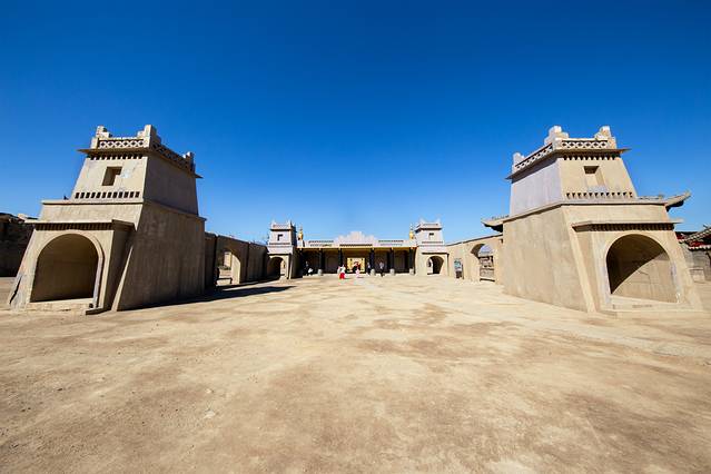 镇北堡影视城分为明、清二城,明城较之清城更有简单,而清城内的屋舍更具规模,有赌坊、茶馆、客栈等,更像一个涵盖所有设施的集镇。