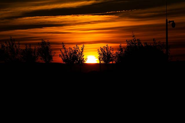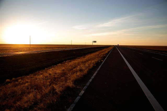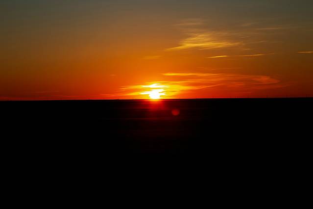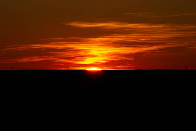 还未到达贝尔湖,在新巴尔虎右旗休息吃点东西的时间天色已经暗淡下来,此刻的草原霞光弥漫天际,地平线与太阳是如此般贴近,下车站在茫茫草原,就这样安静的看着落日缓缓隐藏,天际由金黄变成似火燃烧。夕阳西下,断肠人在天涯,在内蒙的草原,突然想起此句,与茫茫草原,与耳边冷风,与山河万物,我想更懂得了诗句中的含义。
