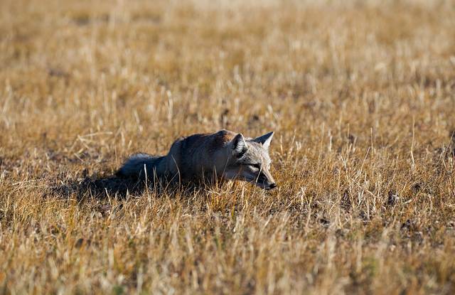 有时候它像一只较小的猫咪,蹲坐或匍匐于地上,有时候它的眼神盯着你仿佛透露着一丝狡黠,有时候慢慢靠近你的警惕又像是一个狩猎者,每一个动作都是一种语言,狐狸真不愧有狡猾一说。