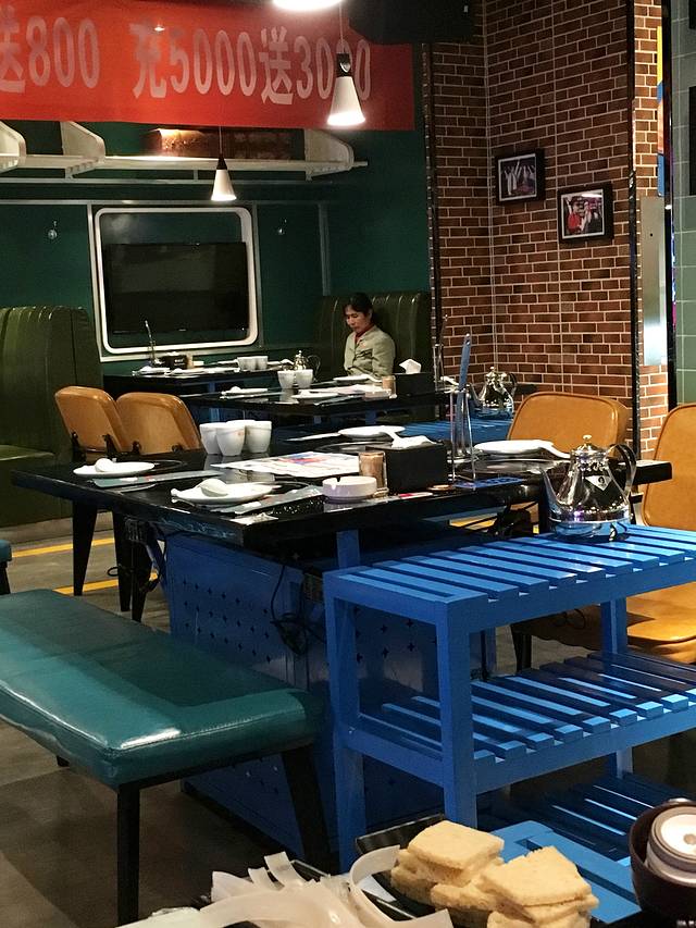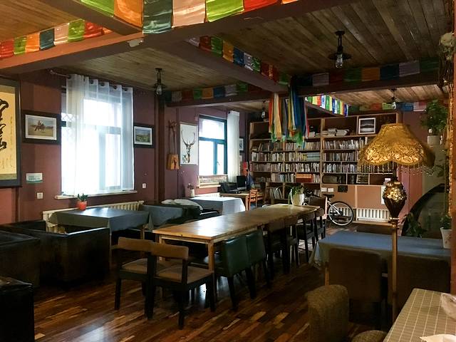 店家将大厅改造成蒙古特色,四处摆放着各类饰品,此时人少显得格外清静。
