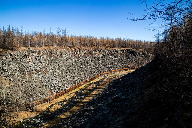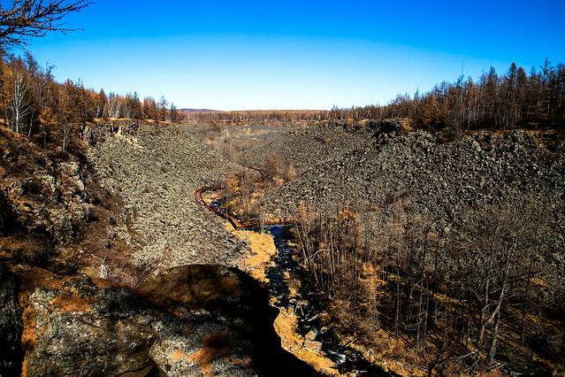 杜鹃湖继续往前走,道路的右边就是大峡谷,基本算结束了阿尔山的景点。大峡谷顾名思义就是火山岩浆流动形成的峡谷,走在其中应该怎么样都有时光的沉淀感吧。不过此段有点着实让人觉得管理人员的态度恶劣,因为路边十米就是大峡谷的高处,有些自驾者在路边停靠就会得来呵斥,个人觉得如何为了不造成道路事故完成可以好好说而不应该呵斥,影响景区的好感。对于我看到此种情况就让队友开着车往前慢慢走了,而我下到峡谷边打卡了几张,也能见到不少摄影爱好者在草地上留下的足迹。