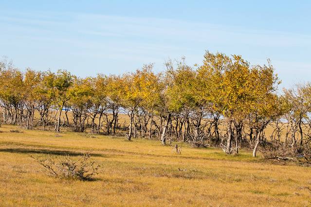 回程的时候看到湖边的一排树突然就好像发现新大陆,本来一望无际的草原多了这一排叫不出名字的树,就像一排战士抵御着边界的风沙。